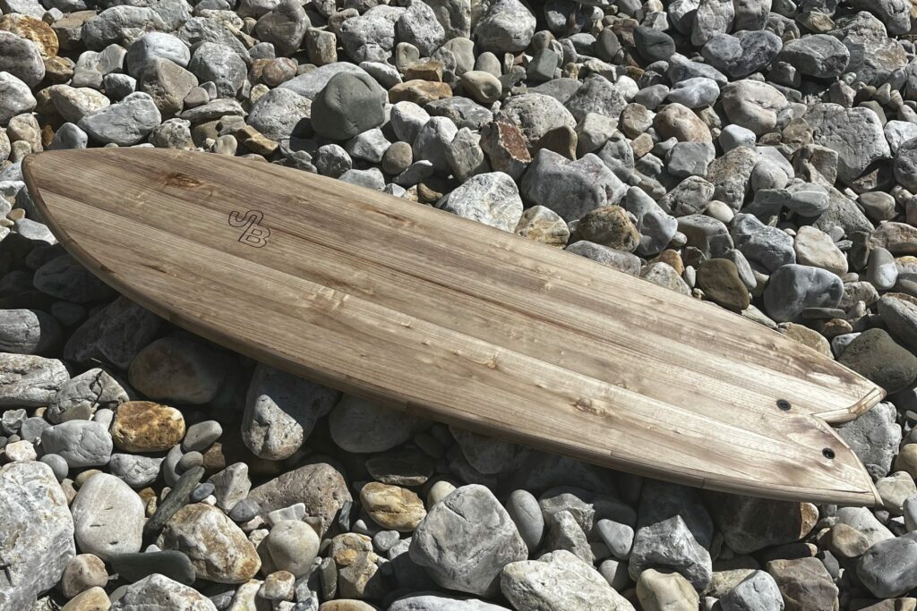 - des planches de surf en bois, fabriquées à la main, sans résine (le moins possible) ni polyester, – et des collaborations artistiques avec des créateurs et passionnés.