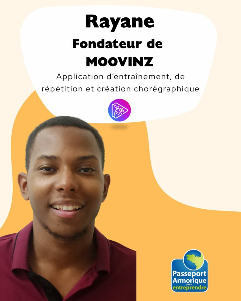 Ingénieur en mécatronique et intelligence artificielle, étudiant-entrepreneur passionné par le mouvement, la scène et l’innovation logicielle, Rayane Geta Mondelice développe Moovinz : une application pensée pour tous ceux qui s’entraînent, répètent ou créent sur musique. Danseurs, artistes, sportifs… Moovinz veut devenir leur nouveau lecteur musical de référence. Un projet technique, ambitieux, né au cœur d’un besoin réel, que Rayane développe avec une énergie admirable — et pour lequel il recherche aujourd’hui un mentor pour accélérer son déploiement. Rayane fait partie de la promotion IMPACT de Passeport Armorique pour Entreprendre.
